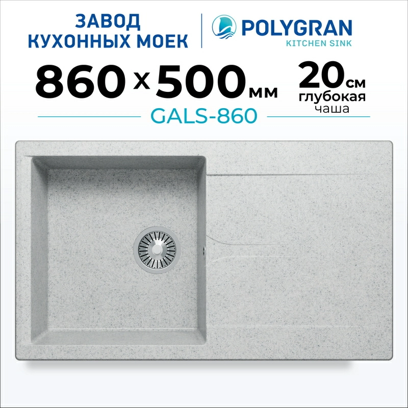 Мойка Gals 860 Polygran - прекрасно смотрится на современной кухне. Изготовлена из искусственного камня, что обуславливает бесшумность и долговечность. Ее глубина позволяет мыть габаритную посуду без брызг. Поверхность покрыта защитным покрытием Gelcoat, что делает ее непористой. На ней не остается жирного налета, она не впитывает неприятный запах.