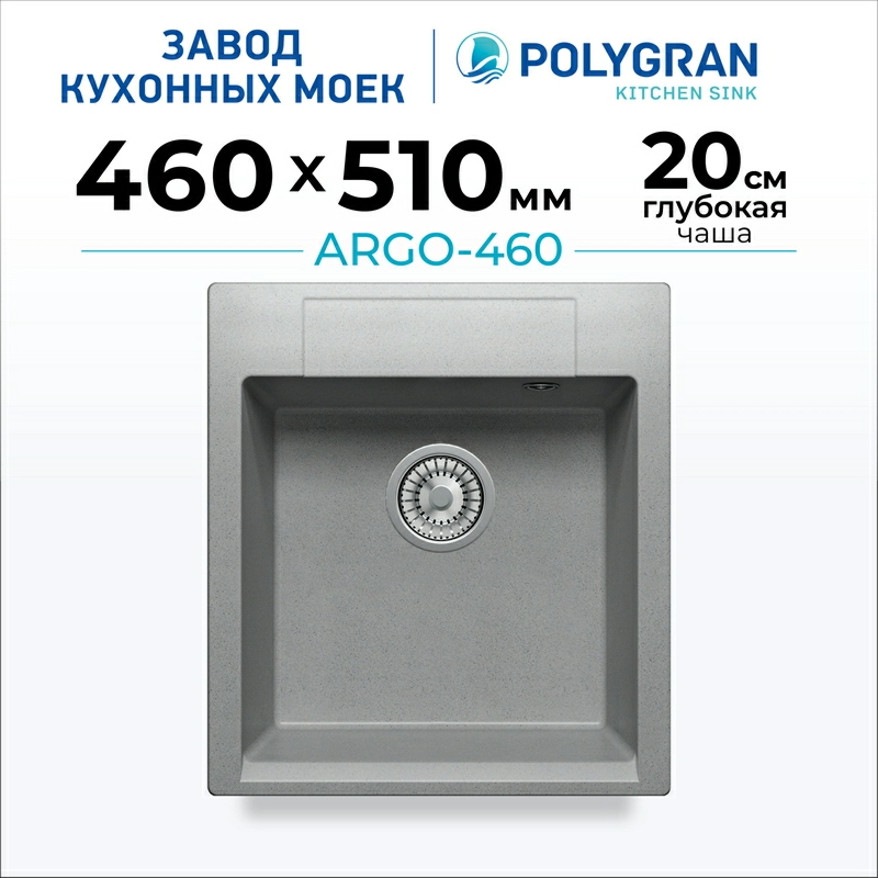 Мойка Argo 460 Polygran – лаконичная модель для изысканного интерьера. Изготовлена из искусственного камня, что обуславливает бесшумность и долговечность. Ее глубина позволяет мыть габаритную посуду без брызг.