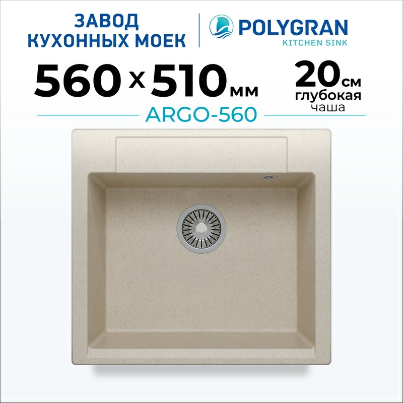 Кухонная мойка Polygran ARGO-560 Цвет Кремовый