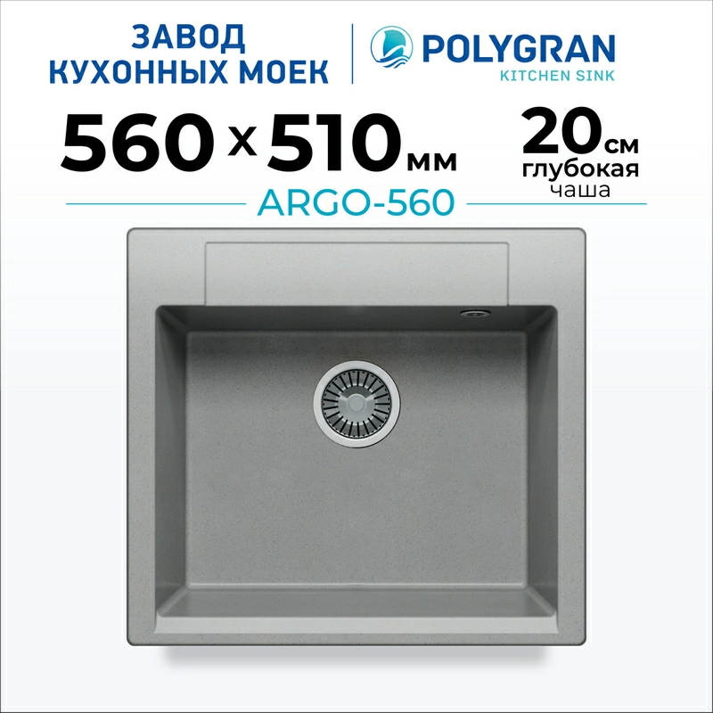 Кухонная мойка Polygran ARGO-560 Цвет Серый