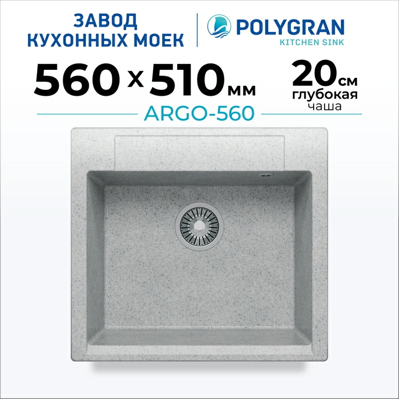 Мойка Argo 560 Polygran – лаконичная модель для изысканного интерьера. Изготовлена из искусственного камня, что обуславливает бесшумность и долговечность. Ее глубина позволяет мыть габаритную посуду без брызг.