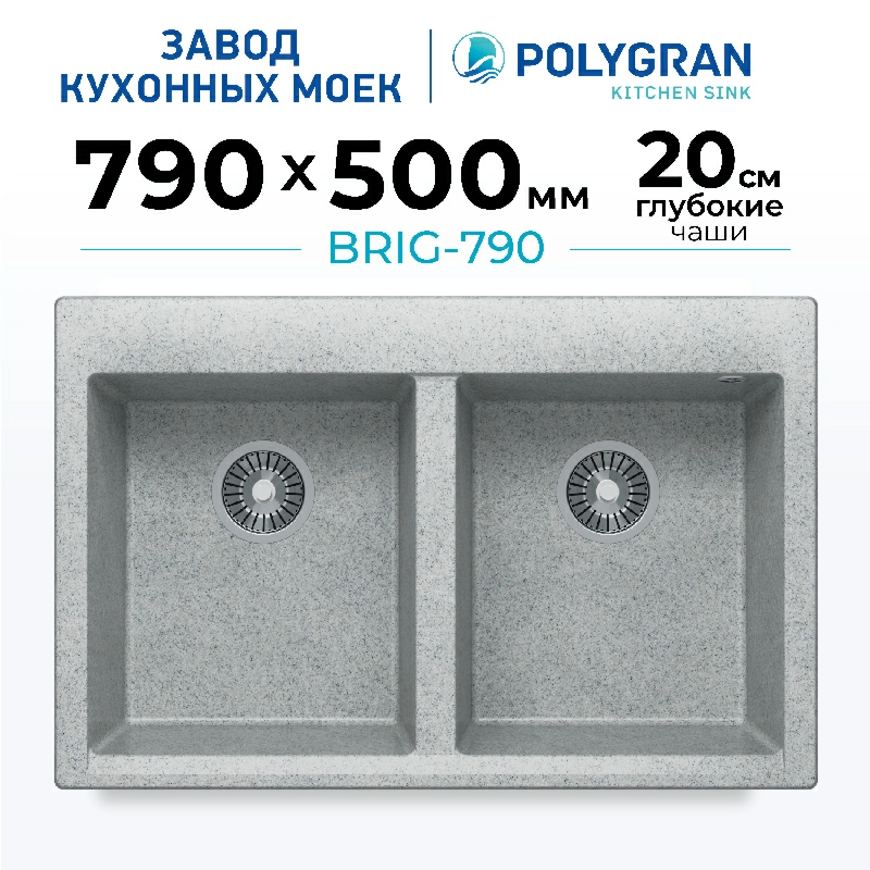 Мойка Brig-790 Polygran – вместительна и удобна в эксплуатации. Модель объединяет в себе основную и дополнительную чаши. их глубина позволяет мыть габаритную посуду без брызг. Изготовлена из искусственного камня, что обуславливает бесшумность и долговечность.