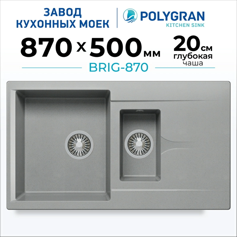 Мойка кухонная Polygran Brig 870 цвет "Серый"