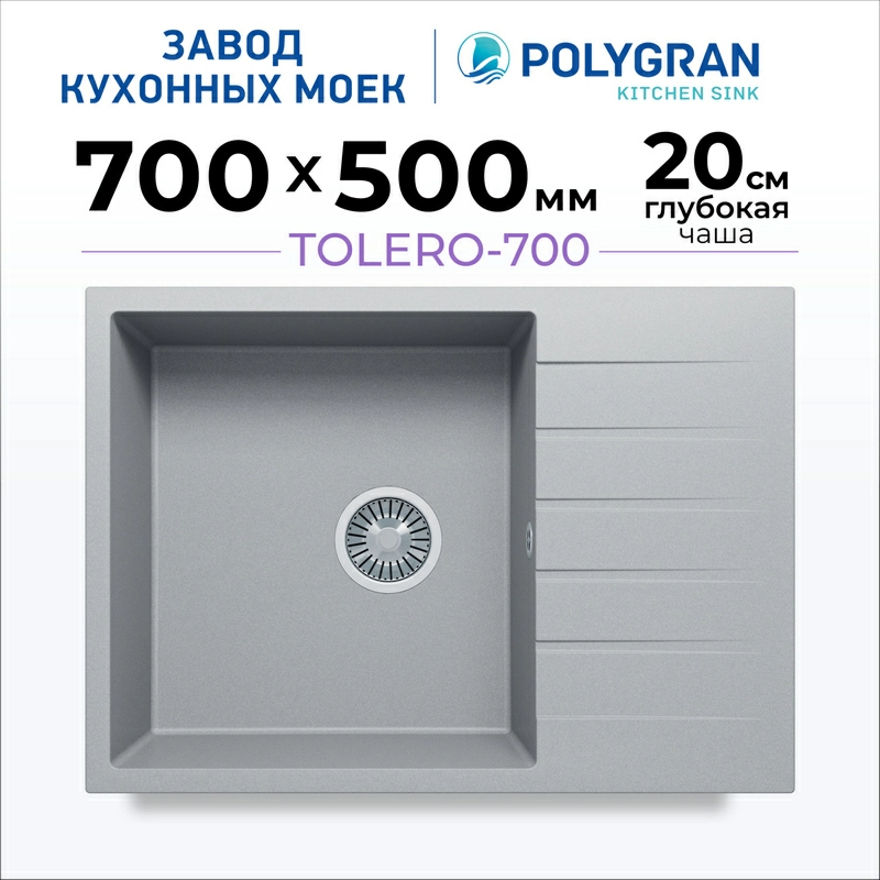 Кухонная мойка Tolero Quartz-700 Цвет Платина