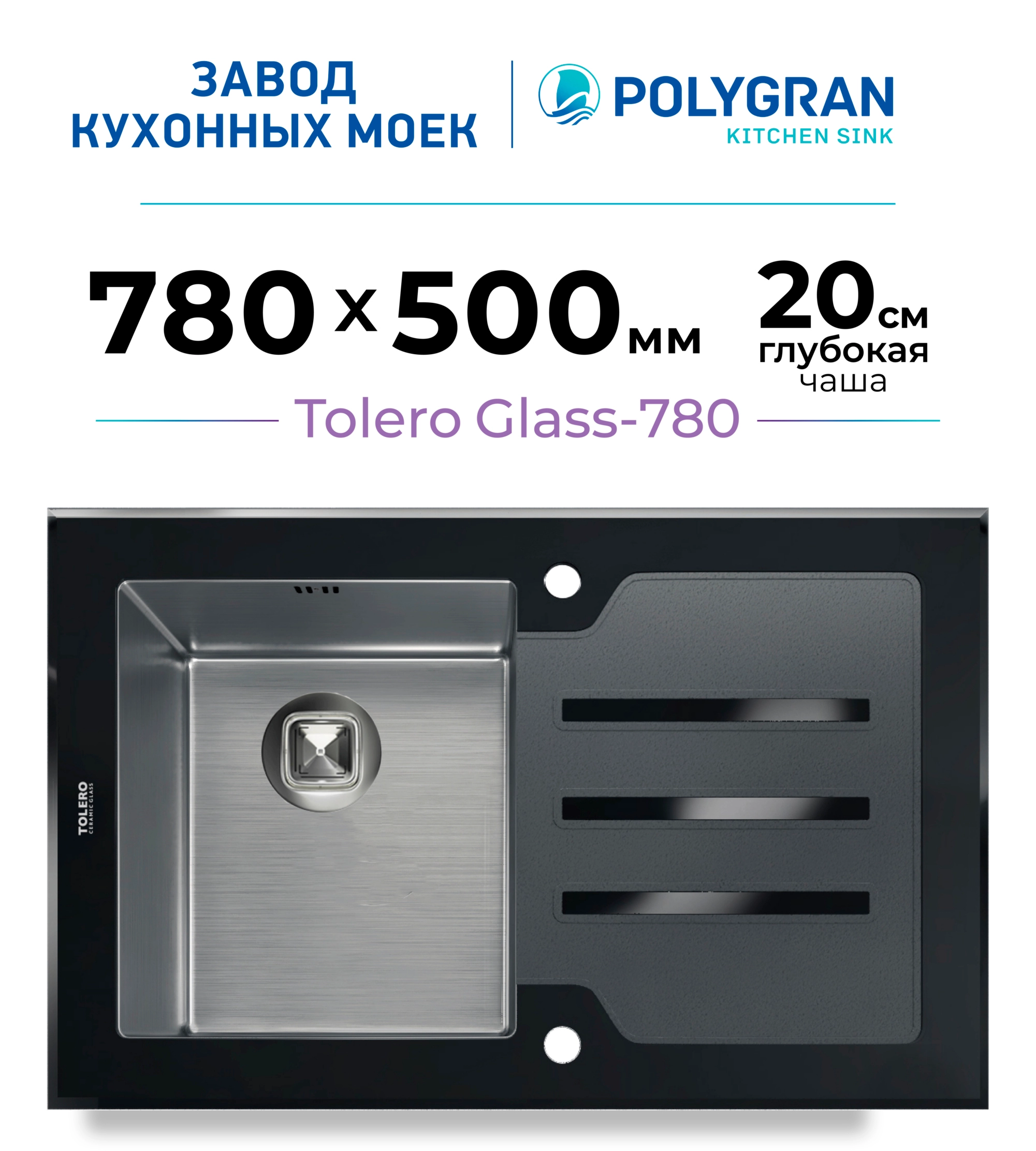 Кухонная мойка Tolero Ceramic Glass TG-780 (Закаленное стекло / Сталь)