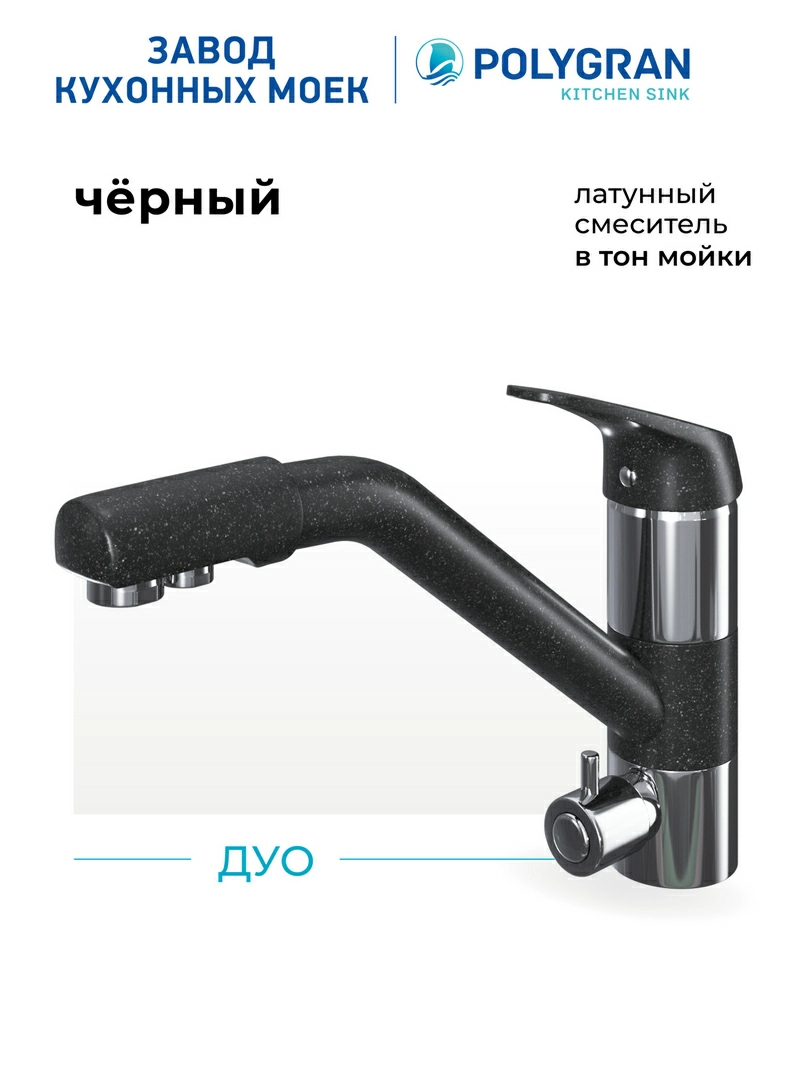 Смеситель кухонный Polygran Дуо. С фильтром. Чёрный