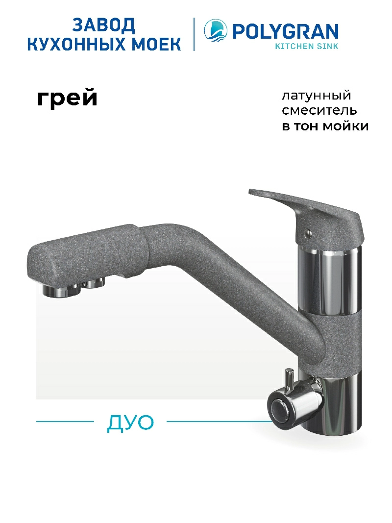 Смеситель кухонный Polygran Дуо. С фильтром. Грей