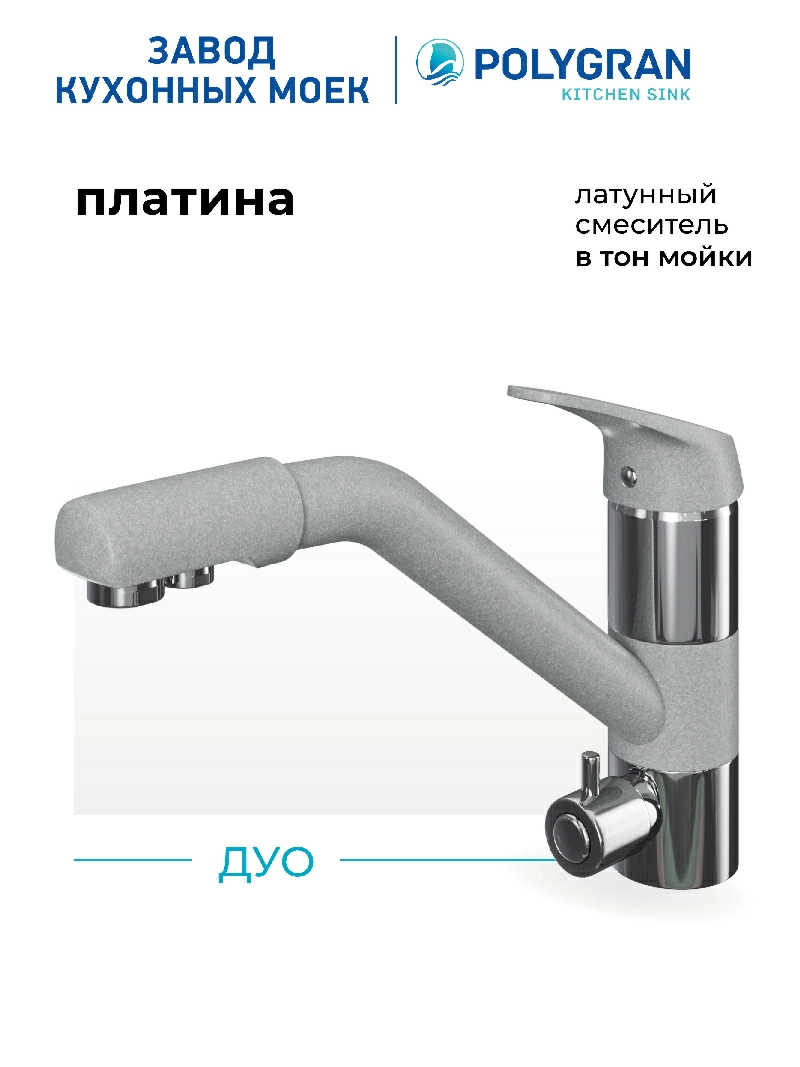 Смеситель кухонный Polygran Дуо. С фильтром. Платина