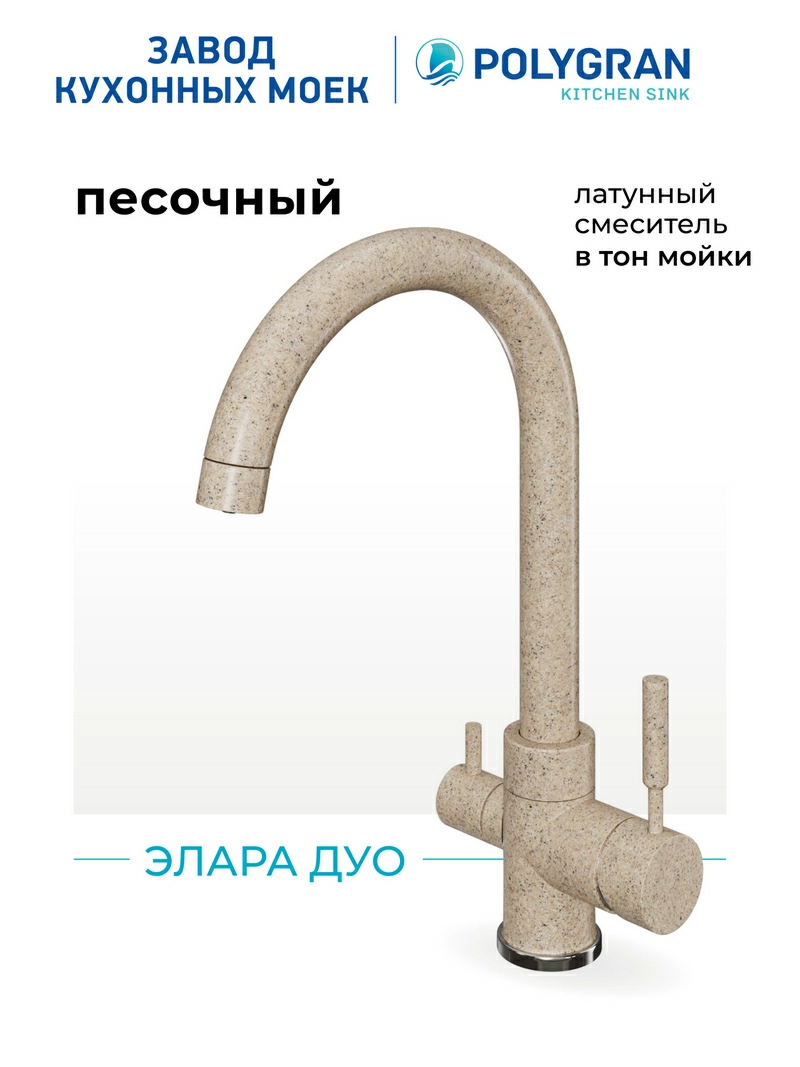 Смеситель кухонный Элара Дуо Песочный