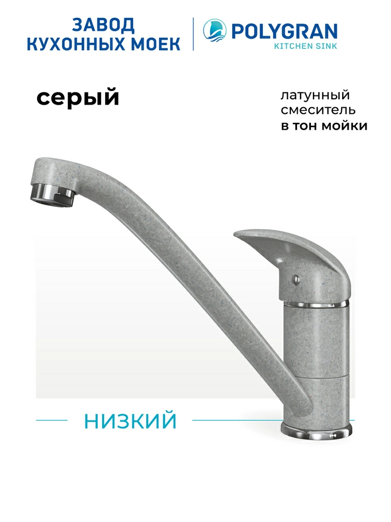 Смеситель кухонный Низкий Серый