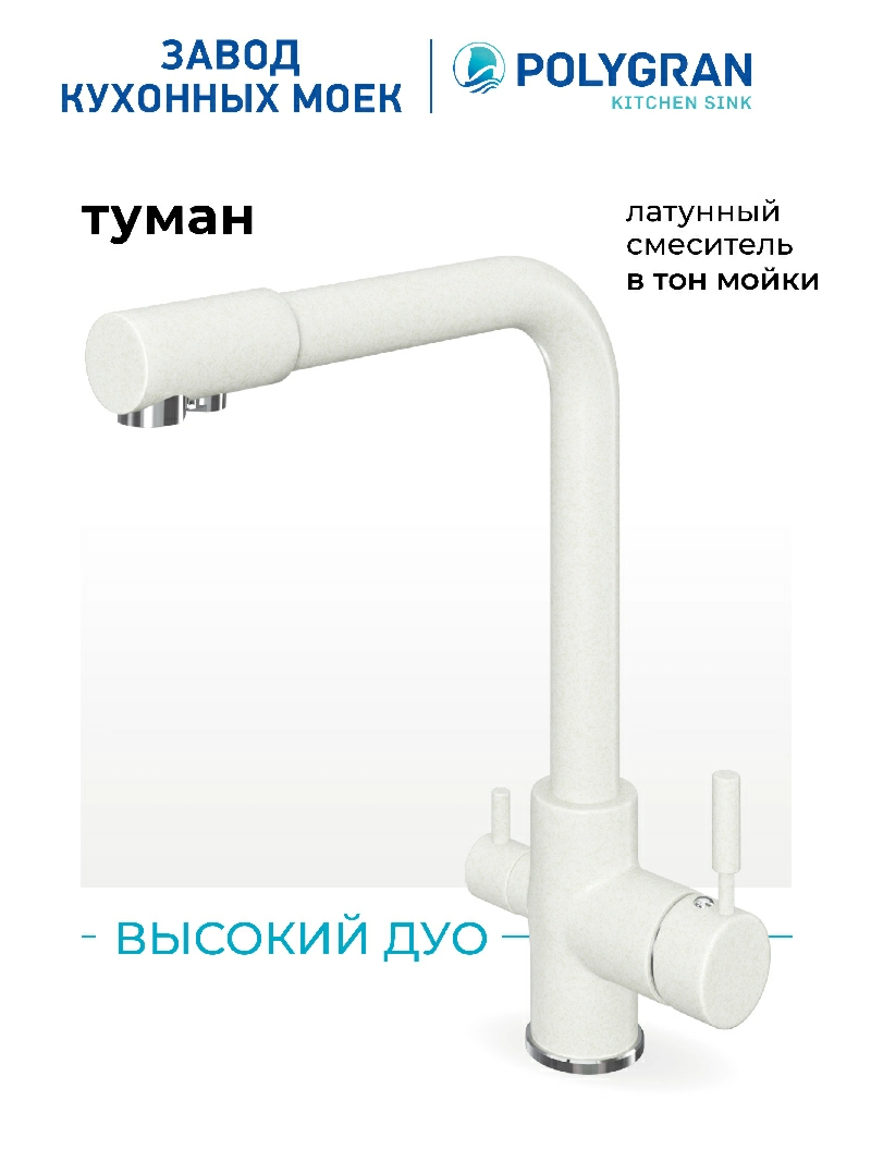 Смеситель кухонный Высокий Дуо Туман